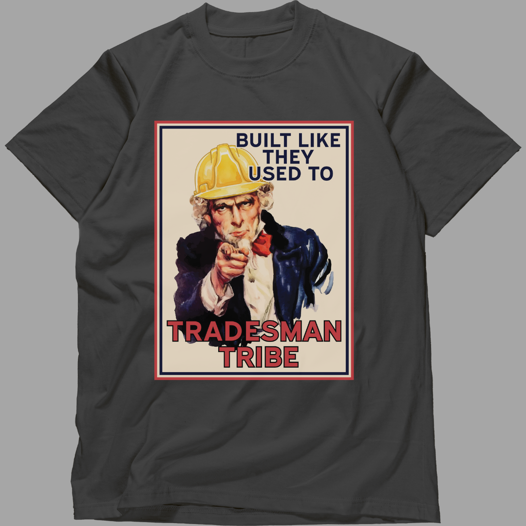 This tee brings back the spirit of a time when things were built to last — by hand, by sweat, by skill. Featuring a bold hard-hat Uncle Sam design and our signature “Built Like They Used To” tagline, it’s more than a shirt — it’s a statement for every blue-collar worker who knows quality still comes from the trades.
