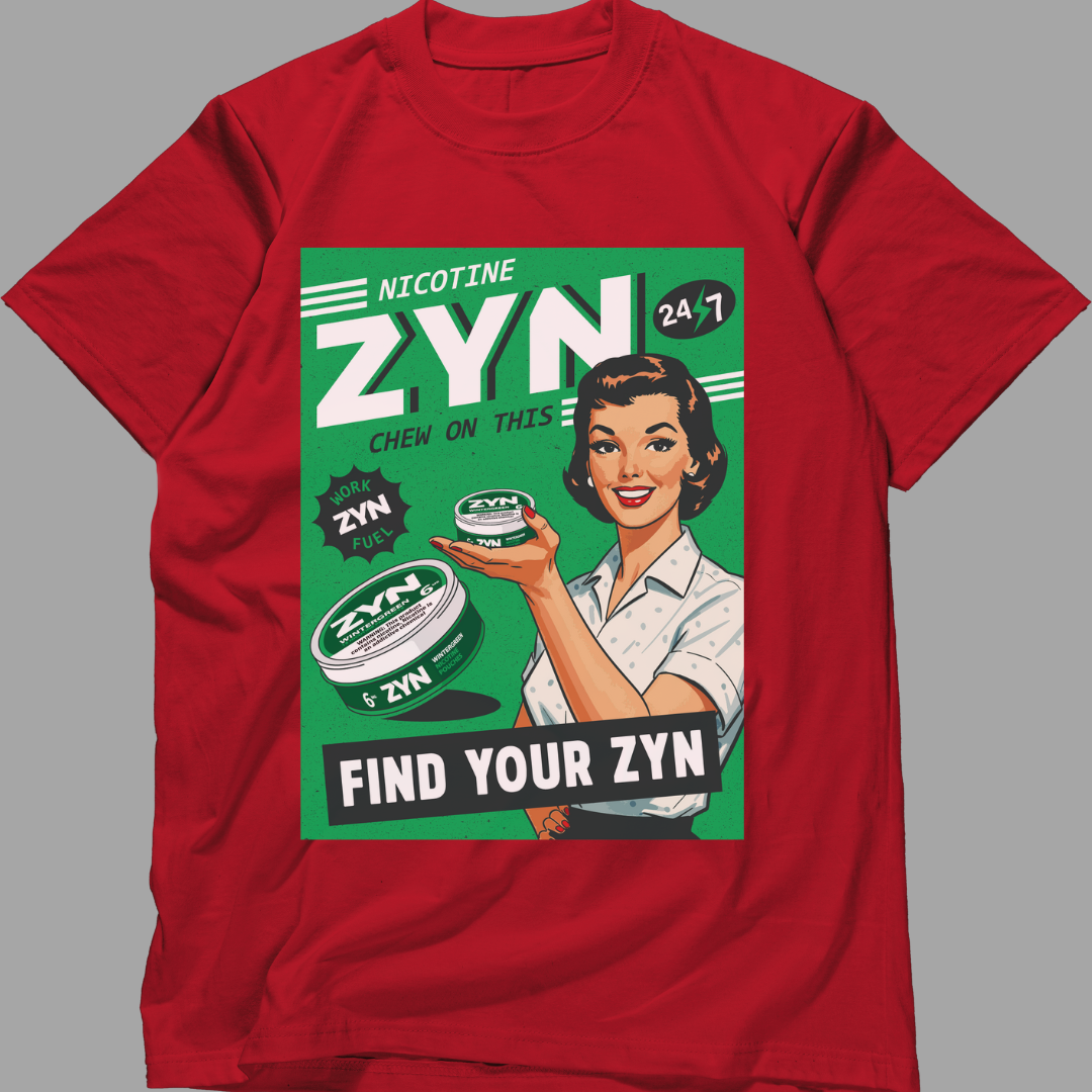 Step back into the golden age of ads—only this time, it’s all about ZYN. This vintage-inspired tee brings bold retro graphics, cheeky parody vibes, and that classic old-school print feel. Perfect for the ones who live on nicotine pouches 24/7, or just love a shirt that gets people talking. Heavy on the grit, heavier on the humor.